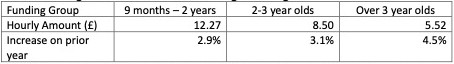 NB. Funding rates change with each tax year, based upon the decision of the schools’ forum.