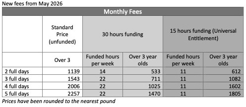 The weekly charge is then multiplied by the 51 weeks within the year that we are open and divided by 12 to provide a monthly calendar invoice amount. Part months are charged on a pro rata basis, which is also the case for attendance changes mid-month.